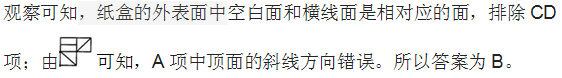 参考答案: B 本题解释:正确答案是B考点空间-折纸盒解析