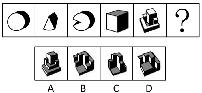 80、从A、B、C、D四个图形中选出最合适的一个,使得它保持上面四个图形所呈现的规律性_____。