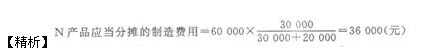 14.企业当月制造费用总额为60000元,N产品的生产工时为30000小时,M产品的生产工时为20000小时,制造费用按各产品生产工时比例进行分配。则N产品应当分摊制造费用为( )