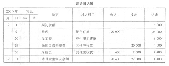(4)12月30日,该采购员报销差旅费1 600元,多余现金款交还财务科。