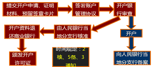 【注意】存款人开立基本存款账户、临时存款账户(因注册验资和增资验资需要开立的临时存款账户除外)和预算单位开立专用存款账户、QFII专用存款账户实行核准制,经中国人民银行核准后由银行核发开户登记证。