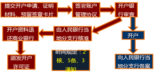 【注意】存款人开立基本存款账户、临时存款账户(因注册验资和增资验资需要开立的临时存款账户除外)和预算单位开立专用存款账户、QFII专用存款账户实行核准制,经中国人民银行核准后由银行核发开户登记证。