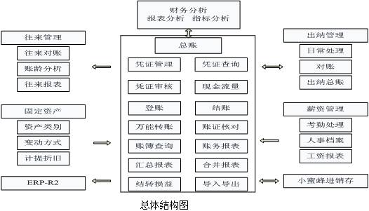 小蜜蜂财务系统包括总帐系统、往来管理系统、资产管理系统、薪资管理系统、购销存、REP-R2、出纳管理。