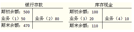 | 库存现金 | 500 | 0 | 50 | 80 | 470 | 0 |