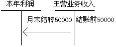 例如:“主营业务收入”月末结账前贷方余额50000元,月末结账要在“主营业务收入”账户借方登记50000元,“本年利润”账户贷方登记50000元,结账后“主营业务收入”余额为0。