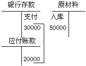 (9)4月25日,购入原材料一批,价格50,000元,以银行存款支付30,000元,余款尚未支付,材料已验收入库。
