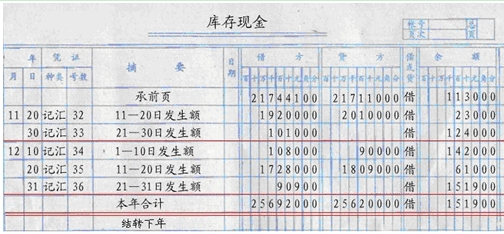 4.总账账户平时只需结出月末余额。年终结账时,将所有总账账户结出全年发生额和年末余额,在摘要栏内注明“本年合计”字样,并在合计数下通栏划双红线。