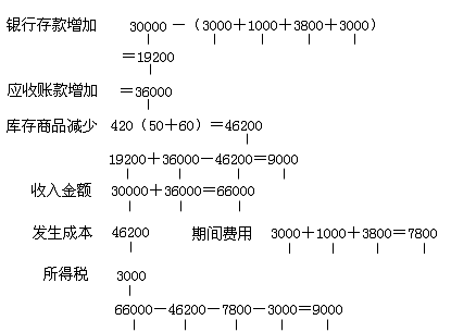 [例2—10]沪东公司生产经营A产品,A产品的单位售价为600元,单位成本为420元,假定不考虑增值税。2009年1月份,沪东公司向本市某商场销售A产品50台,价款30 000元收妥存入银行;按合同规定销售给外地某单位A产品60台,产品已发出,价款36 000元尚未收到;以银行存款支付A产品展览费和广告费3 000元、支付当月短期借款的利息费用1 000元、支付业务招待费等管理费用3 800元;当月确认的所得税费用和应交所得税为3 000元,所得税当即以银行存款缴纳。