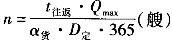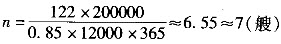 已知t往返=122天,Qmax=20万吨,α货=85%,D定=1.2万吨,代入公式可得: