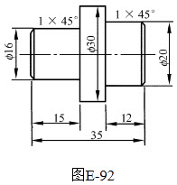 39、问答题 绘图题:已知图(图E-91)最小径段长15mm、中径段长12mm、最大径段长8mm、两端倒角均为1×45°,请标注尺寸。