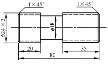32、问答题 绘图题:如图E-93所示,双头螺栓M24、左端长20mm、右端长35mm、总长80mm,请标注尺寸。