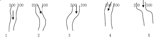 第一条曲线说明窑较正常,功率稍有下降,硬适当加一些前煤。第二条曲线说明前圈掉,应加煤和减窑速。第三条曲线说明第四条曲线说明窑结前圈或后圈,应动一动火焰位置处理掉。第五条曲线说明要掉后窑皮,要窑前加煤。