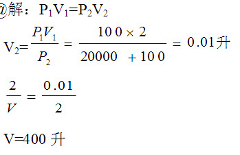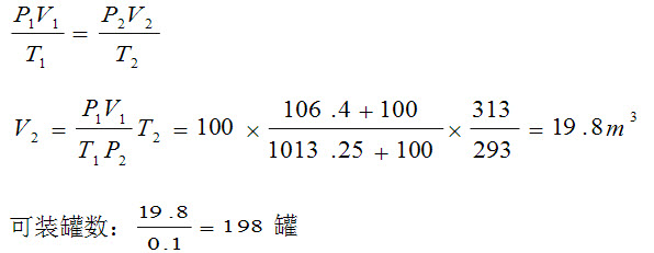 97、问答题 计算题:煤气设备施工完成后,做气密性试验,开始的温度t1=23℃,压强P1=19.6KPa,两小时后,温度t2=25℃,压强P2=18.5KPa。求该设备的每小时泄漏率?(假定1大气压为100KPa)