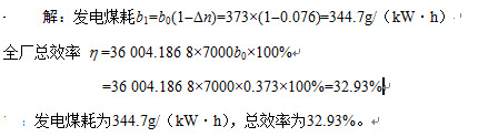 97、问答题 某电厂供电煤耗b0=373g/(kW•h),厂用电率为△n=7.6%,汽轮机热耗q=2200×4.18kJ/(kW•h),试计算发电煤耗及发电厂总效率。