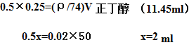 86、问答题 由0.5mol/l的正丁醇溶液稀释浓度为0.02mol/l正丁醇溶液50ml,如何配制最简单?写出计算公式。
