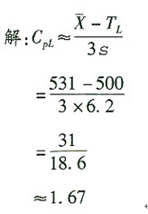 8、问答题 计算题:某工序加工的材料屈服强度不得低于500Mp,标本实测均值为531Mp,样本标准偏差为6.2Mp,求CPL。