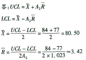 某厂用图对某下序进行控制。今测得样本量(n)为3的25组数据。经分析计算后得到图的控制上限为84.00,控制下限为77.00。问:图的控制目标(中心)应该在何处?