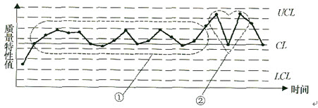 12、填空题 在均值控制图巾,判断异常的8条检验准则有:()个点落在A区以外;连续()点落在中心线同一侧;连续()点递增或递减;连续()点中相邻点交替上下;连续3点中有()点落在中心线同一侧的B区以外;连续5点中有4点落在中心线同一侧的c区以外;连续15点落在中心线两侧的C区内;连续8点落在中心线两侧且无一在C区内。
