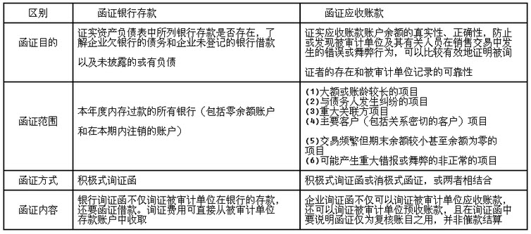 请在下表填列函证银行存款与函证应收账款的不同点。