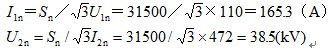 已知:Sn=31500kVA,U1n=110kV,I2n=472A