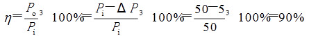 7、问答题  计算题:一台变压器从电网输入的功率Pi为150kW,变压器本身的损耗ΔP为20kW,试求变压器的效率η为多高?