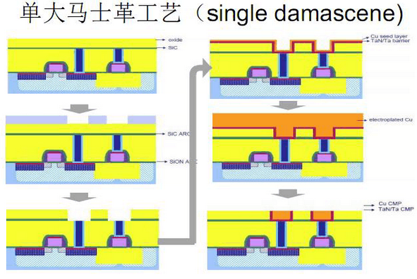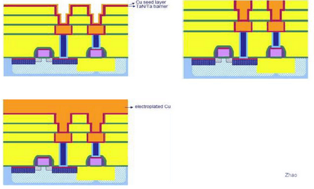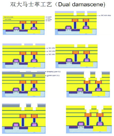 22、问答题  分别画出单大马士革和双大马士革工艺流程图。