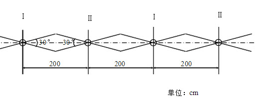 15、问答题 绘图题:试绘出摆角30°,孔距2m,分两序施工的高压摆喷灌浆理论成墙图。 图中尺寸以cm计。