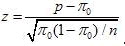 在大样本时,总体比例检验统计量用z统计量,其基本形式为()。