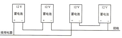 43、问答题 绘图题:有两个12V车用蓄电池,请绘出24V的用电连接线路简图。