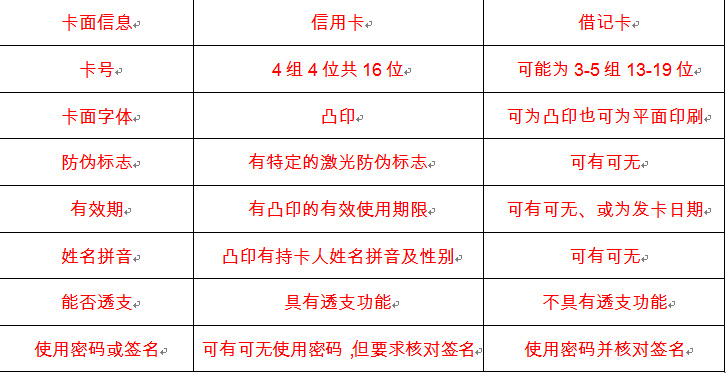 15、问答题 简述信用卡和借记卡的区别。