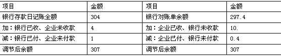 [计算题]某企业2011年11月30日银行存款日记账余额304万元,银行对账单余额297.4万元。经逐笔核对,发现有以下来达账项:(1)企业开出一张支票0.4万元购买办公用品,企业已登记入账,但银行尚未登记入账;(2)企业将销售商品收到的转账支票10万元存入银行,企业已登记入账,但银行尚未登记入账;(3)银行受托代企业支付水电费1万元,银行已经登记入账,但企业尚未收到付款通知单、未登记入账;(4)银行已收到外地汇入货款4万元登记入账,但企业尚未收到收款通知单、未登记入账。要求:根据上述资料,填制该企业2011年11月30日的银行存款余额调节表。