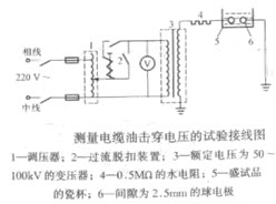 1、问答题 绘出测量电缆油击穿的试验接线示意图。