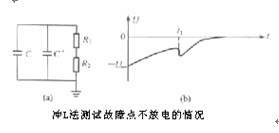 13、问答题 绘出冲击高压测试法寻找电缆故障,故障不放电时,测试端的等效电路图和波形图。