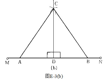 188、问答题 绘图题:用“等腰三角形法”,如图E-3(a)所示,在已知直线MN上的D点处作出直角。