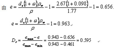 96、问答题 已知土的试验指标为r=17kN/m3,Gs=2.72,和w=10%,求е和Sr。