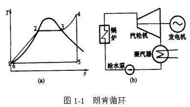 (a)朗肯循环各过程参数的变化;(b)朗肯循环系统设备