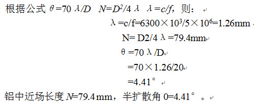 171、问答题 计算题:计算探头直径为20mm,频率为5MHz的直探头在铝中的近场长度和半扩散角。(铝C1=6300m/s)