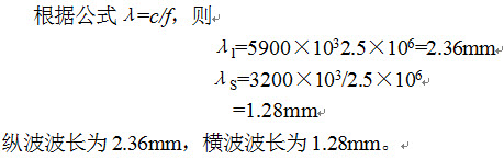 195、问答题 计算题:一台仪器的工作频率是2.5MHz,在探测钢工件时,纵波和横波的波长各是多少?(钢C1=5900m/s,钢CS=3200m/s)