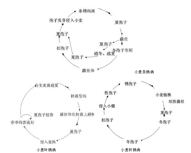 (3)初侵染和再侵染:病原物传播到寄主后引起初侵染,而初侵染后形成的病原物经传播后再次引起的病害称再侵染,通过再侵染病害不断蔓延。