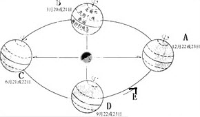 根据“地球绕太阳公转示意图”,回答以下题目: