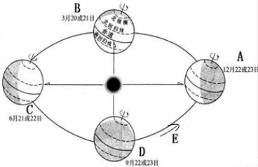 (1)标出图中A、B、C、D四处代表的节气名称.