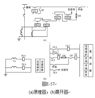 6、问答题 绘图题:写出图E-56中①、②、③、④所指符号的含义。