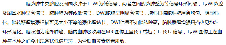 关于脑肿瘤MRI信号特点的描述,哪项不对()