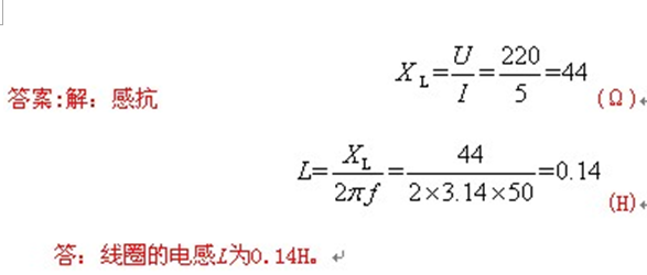 172、问答题 有一线圈,若将它接在电压U为220kV,频率f为50Hz的交流电源上,测得通过线圈的电流I为5A,求线圈的电感L是多少?