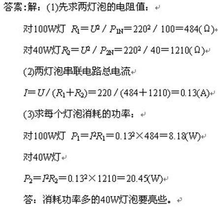 7、单项选择题 两个额定电压相同的灯泡,串联在适当的电压上,则功率较大的灯泡()()