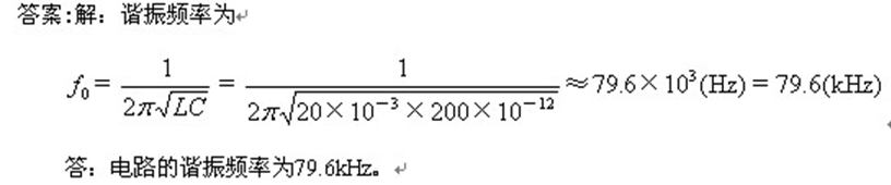14、问答题 在RLC串联电路中,已知L=20mH,C=200pF,R=100Ω,问电路的谐振频率f0为多少?