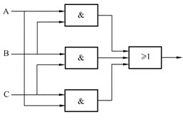 6、问答题 绘图题:用开关K1、K2、K3控制一个楼梯灯D,当有2个或3个开关合上时,D亮,否则D不亮,试写出其逻辑表达式并画出其继电器电路图。