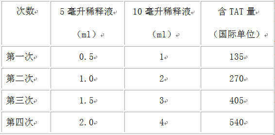 7、问答题 某病人因外伤,医嘱注射破伤风抗毒素1500单位,皮试结果阳性,如何处理?