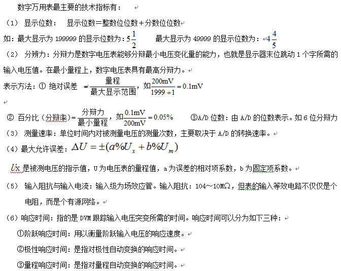 间接测量:利用直接测量的量与被测量之间的函数关系,间接得到被测量量值的测量方法。如:用伏安法测量电阻消耗的直流功率P,可以通过直接测量电压U,电流I,而后根据函数关系P=UI,经过计算,间接获得电阻消耗的功耗P;用伏安法测量电阻。