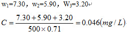 13、问答题 某水样500m1经富集后,测得3个管馏分中偏二甲基肼含量分别为7.30、5.90和3.20μg,试计算水样中偏二甲基肼浓度。(回收率为71%)